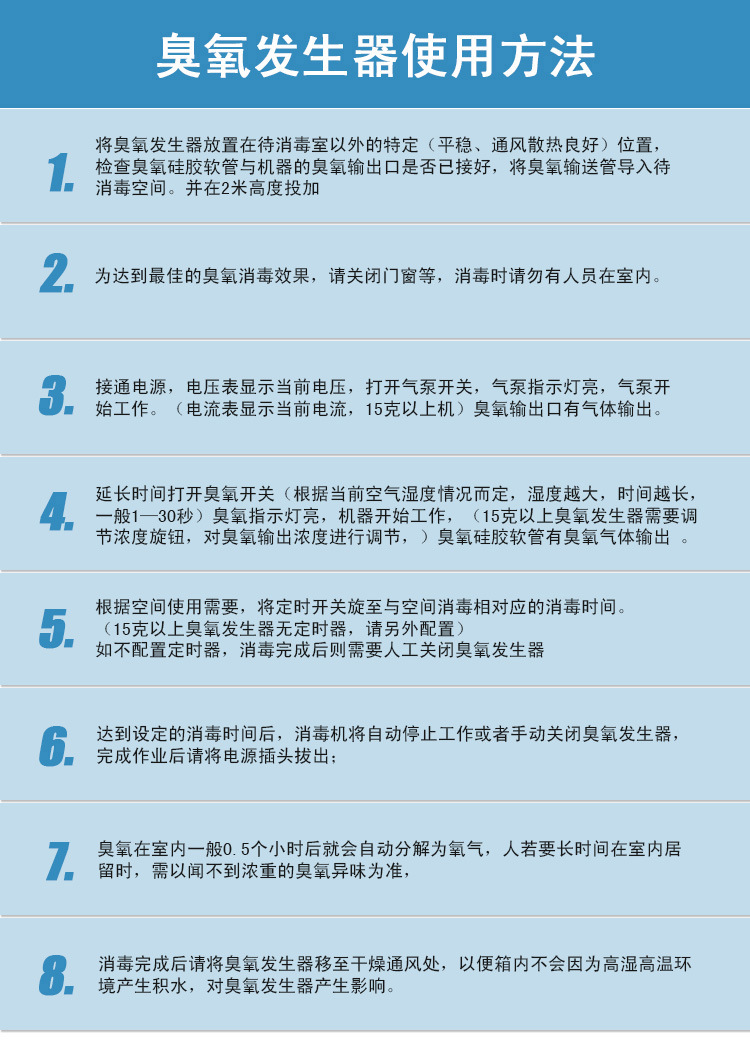 廣州佳環電器科技有限公司是專業從事臭氧系列設備的研發、生產及銷售為一體的臭氧發生器廠家。公司成立于2007年,經過多年發展,現已成為臭氧行業的領先企業,以雄厚的技術實力和豐富的臭氧行業經驗為依托,不斷的開發出新型臭氧產品面向市場。我們以臭氧發生器技術為核心,制造出多種規格臭氧產品,包括空氣源臭氧消毒機、氧氣源高濃度臭氧一體機、汽車消毒機、高濃度臭氧水一體機、臭氧消毒柜、畜禽養殖儀等大中小臭氧系列產品。 專業服務于食品殺菌,食品安全,制藥殺菌,泳池水消毒,海洋館,污水脫色,降COD,BOD,化工氧化,食用菌栽培滅菌技術,飲水安全、環保等十幾個行業的各種需求。佳環電器科技臭氧技術,臭氧發生器專用制氧技術,臭氧發生器水氣混合技術,臭氧機檢測技術,臭氧機水處理技術,臭氧行業應用技術等領域,在國內均處于領先地位。我公司臭氧設備以技術先進,性價比優勢而在行業上處于有力競爭地位。 自創業以來,公司不論是對社會、對客戶、對員工皆秉持誠意、正心、篤實、守法的態度來經營企業,建立起一貫良好的企業形象。誠信是寶貴的無形資產,是立業之本,以誠心為 已、服務為先、顧客為尊、想顧客之所想。 佳環臭氧發生器,臭氧消毒三大好處: 佳環臭氧發生器,運用范圍: 各區域使用介紹: 企業、學校等餐館臭氧應用: 由于人員較多,一旦出現事故就非常嚴重。而且也確實許多地方和學校發生了這些群體性的食物中毒和腸道傳染病等事件。這一系列事件的發生,嚴重影響了員工和學生的身心健康及正常秩序,也暴露對食品安全管理工作存在的漏洞、隱患和忽視。因而需要對食堂的管理和操作進行規范,同時需要對食品原材、廚具、餐具及食堂進行消毒,而傳統的消毒方法容易造成二次污染和殘留,因而越來越多的地方采用臭氧消毒殺菌。 要保證這些集體食堂的食品安全,可針對以下方面進行操作: 1、對食堂空間的殺菌消毒。 2、對食堂的工作服、廚具、餐具、原材等的殺菌消毒。 3、對食堂使用的水殺菌消毒等。 而通過臭氧發生器能很好的滿足這些要求,臭氧發生器具有以下有別于傳統殺菌方法的優點。 1、環保潔凈,無二次污染,臭氧消毒產物無害且自身不對環境產生污染,在環境中能自然分解成氧氣,因而是一種潔凈的凈化技術。 2、高效迅速,短時間見效,能有效殺滅各種微生物,趕走各類蚊蟲鼠蟻,有限扼制傳播途徑和傳染源。 3、適應性強,隨地即可用,就地取材產生高濃度臭氧且操作方便。 食品行業臭氧應用: 臭氧是強氧化劑,能有效氧化各類物質,殺滅各類微生物。還能脫色、去臭,對于其他方法難分解的物質也變成容易分解的物質。因此,在生產生活的用水和空間凈化處理方面,臭氧的作用顯著、使用廣泛,能應用于處理各類原水、廢水等,保障生產生活的正常進行。 臭氧的滅菌機制和滅菌特性 臭氧能作用于細菌和病毒等的細胞壁和細胞膜,作用于其脂質(類脂化合物)的雙鍵,將其氧化斷鏈從而將細胞膜、細胞質被破壞,從而達到滅菌的效果。 化妝品容器的消毒滅菌: ? 對管道容器做消毒滅菌的優點非常明顯,臭氧發生器可以流動使用,對不同的罐進行消毒,每個生產單元在每次換料前,都可以及時得到消毒,使用效率很高,很方便,不要用那么多的酒精,不要用氮氣,也不要用高壓蒸氣。所以在化妝品廠、食品廠得到了廣泛的推廣。 醫療衛生領域:醫院是治療疾病的地方,但是由于到醫院就診的人很大部分是危重患者,其炎癥正處于高峰時期,來自病人身上的有害病菌極易散發于空氣中。因此,醫院又是容易感染疾病的場所。現在,由于到醫院就診引起交叉感染的事已司空見慣。醫院手術和護理操作前大夫或護士的雙手及手術器具的消毒問題也是亟待解決的課題之一。具有高效、迅速殺菌作用的臭氧在醫院環境消毒、術前消毒等方面大有用武之地。比如,日本科學家就研究過用于醫院的臭氧水消毒法。據其研究結果,用臭氧水對醫院手術前醫生、護士的雙手消毒,可殺死所有細菌,不僅時間極短,而且其消毒效果也是其他碘類消毒劑無法比擬的。傳統進行同樣的消毒操作至少需要10分鐘。在醫院中最易引起感染的黃色葡萄球菌和綠膿桿菌等在臭氧水中只需5秒鐘即可全部殺死,其殺菌力遠遠超過酒精和氯。而且臭氧水具有可靠的安全性,經常使用不會傷及肌膚,即使誤喝也不會中毒。 治療臭氧應用: 如俄羅斯研究出一種特殊的液壓液來治愈傷口,其基本方法就是在高壓下用霧狀富含臭氧的生理溶液沖洗傷口,水流就象手術刀一樣將傷口中的膿血、壞死組織及細菌分解物清除,同時殺死傷口表面的致病微生物。然后變換"臭氧刀"的結構,繼續增大液體的壓力,使臭氧化的溶液滲進發炎組織幾毫米至3厘米深,并增加氧氣,殺死更深層的致病細菌。據報道,用這種方法已治療過200例病人,他們都是一些糖尿病、膿毒病、血管動脈硬化及不宜施行通常外科手術的患者,結果這些病人的傷口全都完全愈合。 隨著科技發展,水產養殖技術也越來越完善,但因病原微生物、及水質狀況等因素對養殖業危害始終存在。以傳統的投加藥品進行預防和救護等方法以及不能起到很好的作用。人們迫切的需要尋找一種完善的技術來針對這一系列的問題。 水產養殖時臭氧應用: 通過臭氧發生器、臭氧消毒機產生的臭氧對水中的微生物、